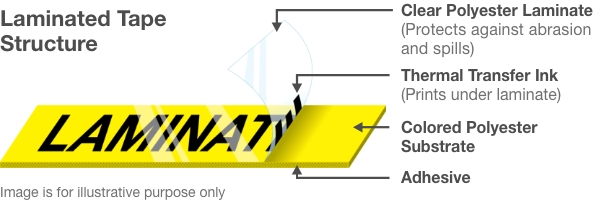 Many of the tapes in the Brother lineup feature a laminate film that is applied over the top of the label during the printing process. These Brother P-touch laminated label tapes are made with industrial pros in mind. Built to last and tested to the extreme, these drop-in label cartridges feature six layers of materials to form thin yet extremely strong labels. Thermal transfer printing, sandwiched between two protective layers of PET (polyethylene terephthalate), results in a virtually indestructible label that can withstand even the toughest conditions.