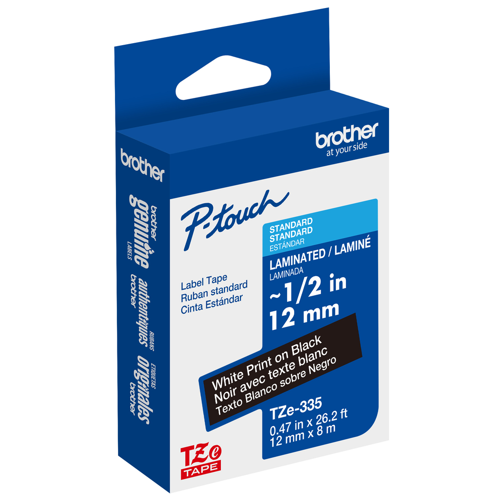 This 0.47in (12mm) white on black tape features our exclusive laminated tape process and our standard adhesive. Ideal for everyday applications and can withstand hot and cold environments, as well as chemical and moisture exposure. Best suited for smooth, flat surfaces.