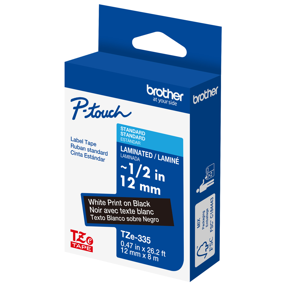 ~1/2in x 26.2ft (12mm x 8m) White on Black Standard Adhesive Laminated Tape