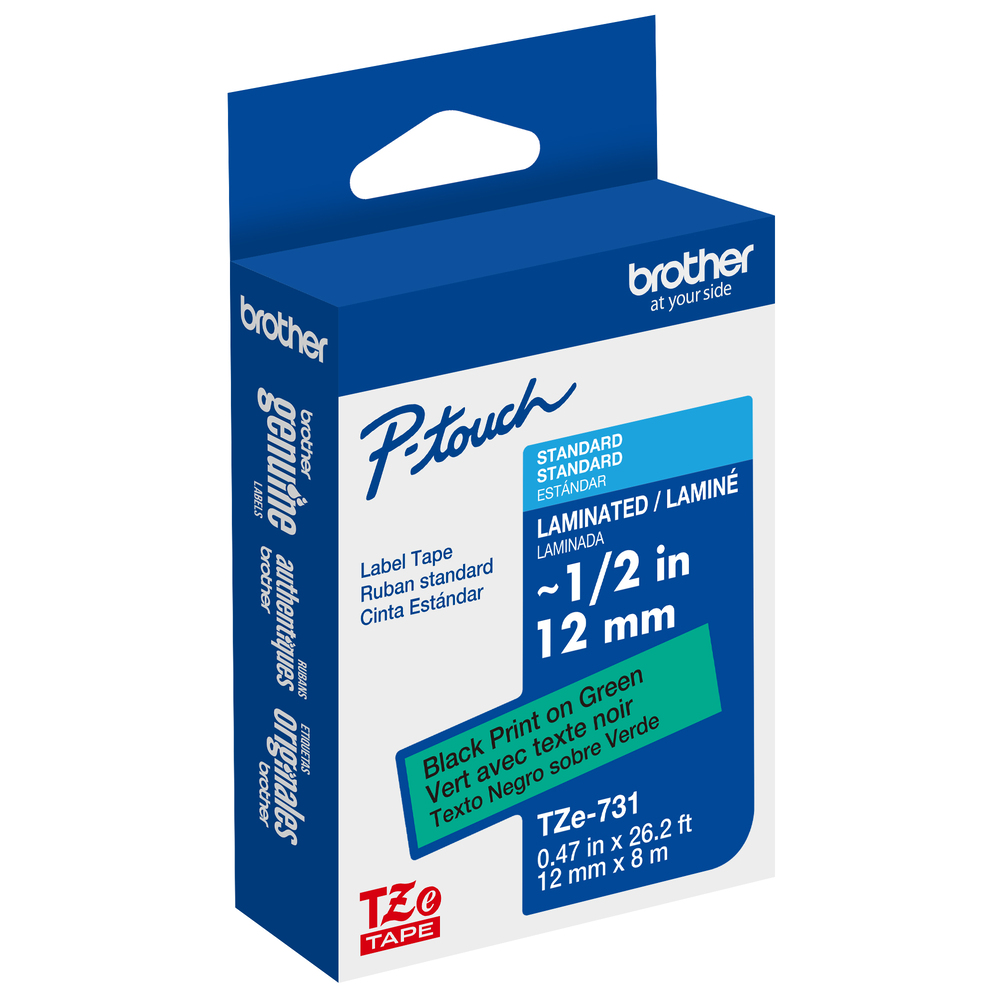 This 0.47in (12mm) black on green tape features our exclusive laminated tape process and our standard adhesive. Ideal for everyday applications and can withstand hot and cold environments, as well as chemical and moisture exposure. Best suited for smooth, flat surfaces.