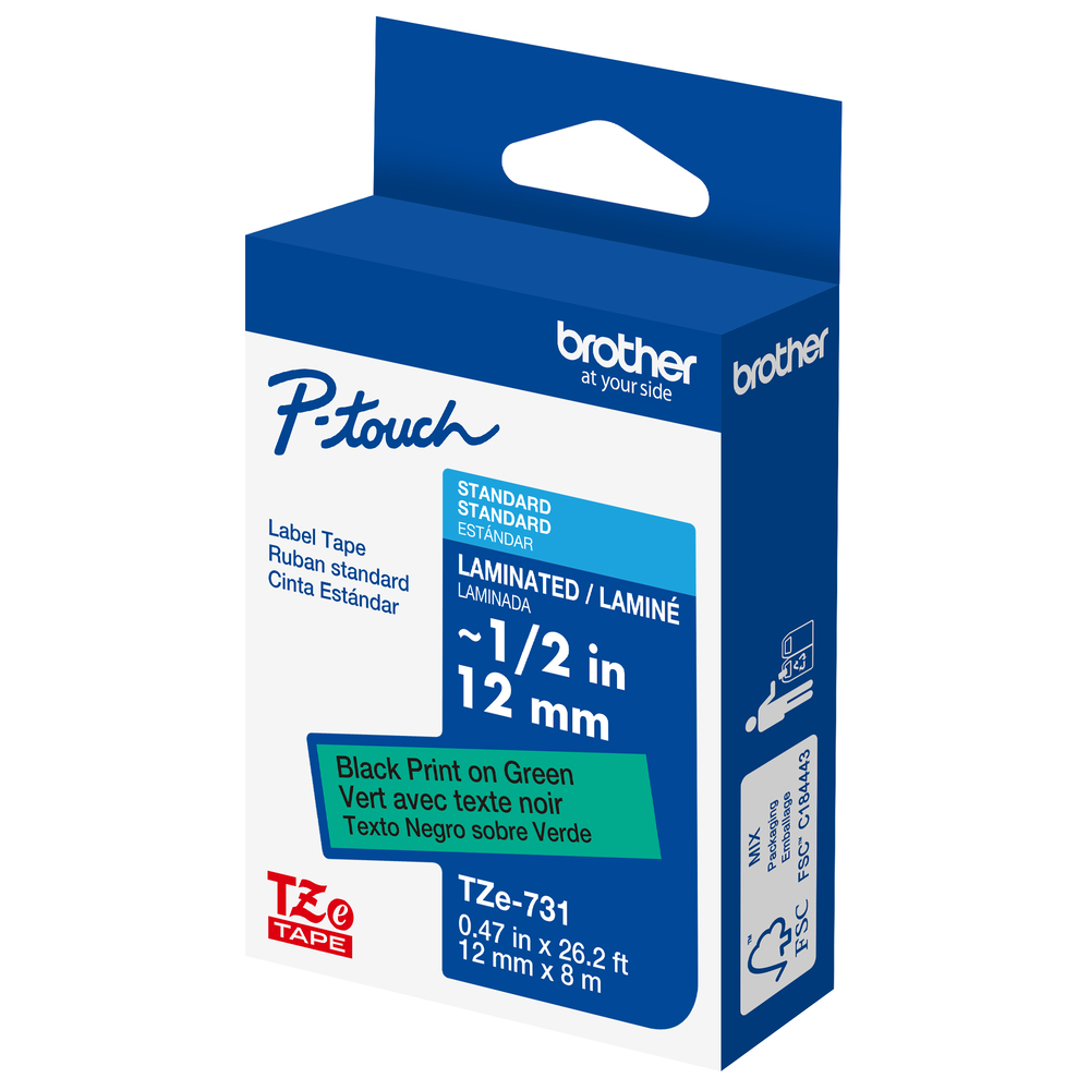 ~1/2in x 26.2ft (12mm x 8m) Black Print on Green Laminated Label Tape